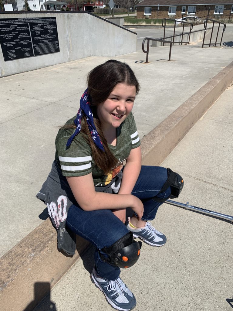 Abigail at the skate park by Stearns Beach