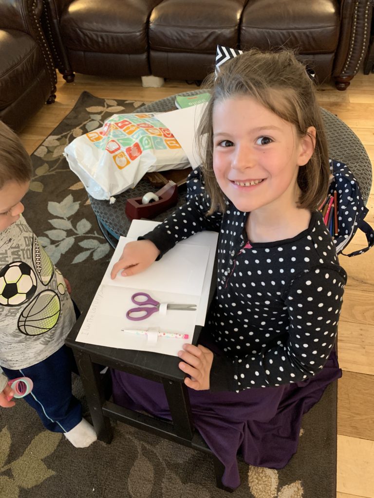 Anna working on school crafts