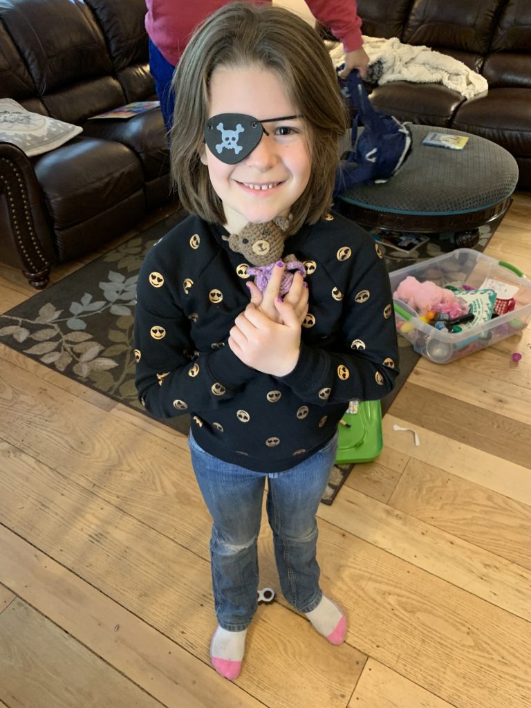 Anna trying to look like a fierce pirate and failing