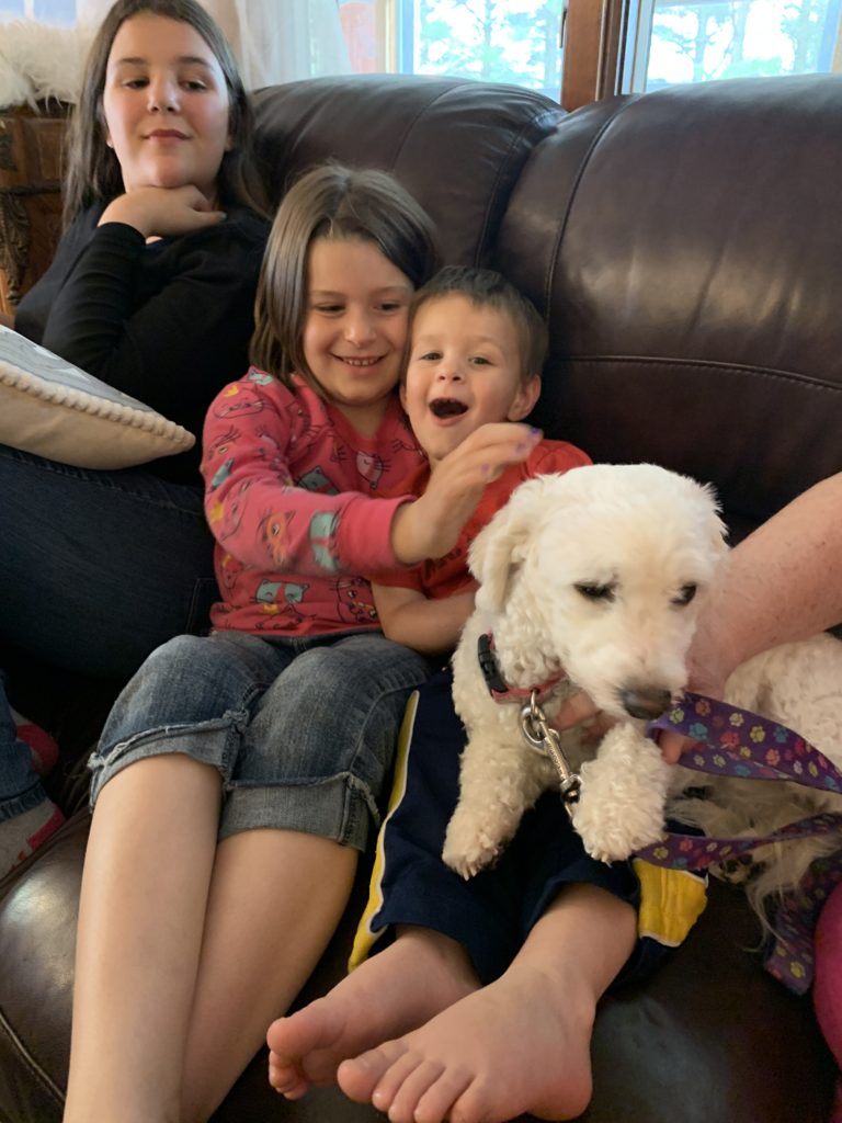 Abigail, Anna and Asher meeting a new friend