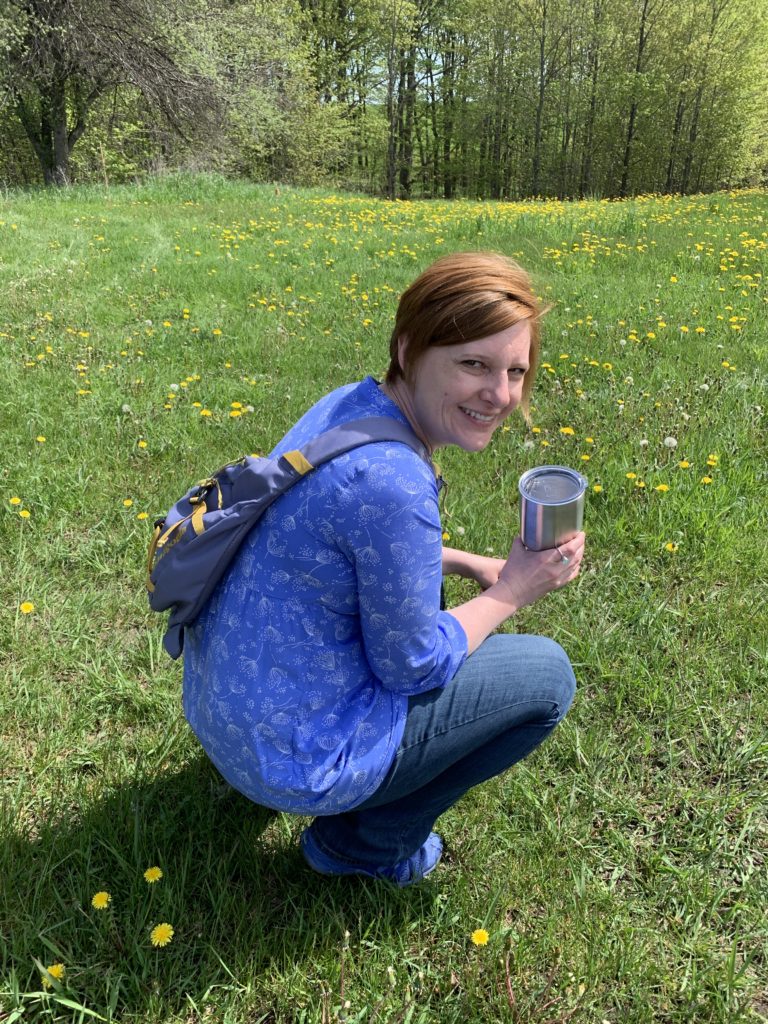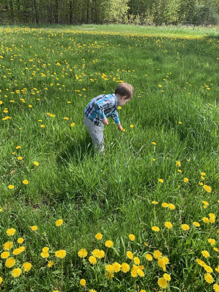 Asher picking dandelions.