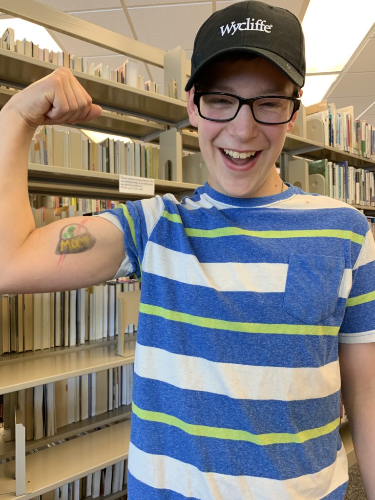 Andrew, now a 6th grader, making his debut at Youth Group.