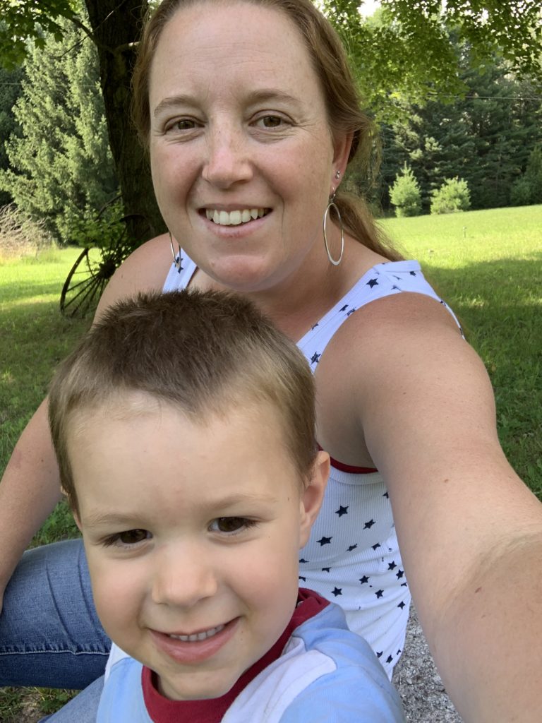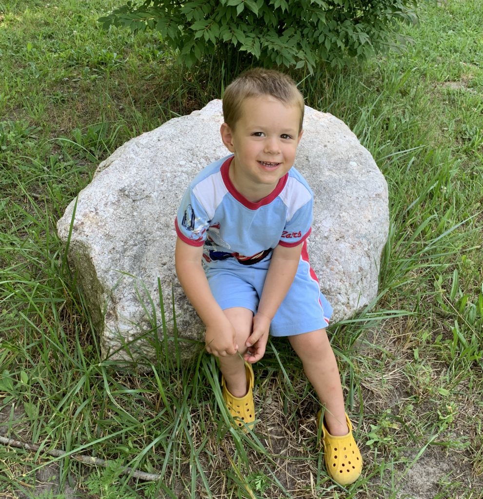 Asher wanted some mommy time on the big rock in Yaya’s backyard