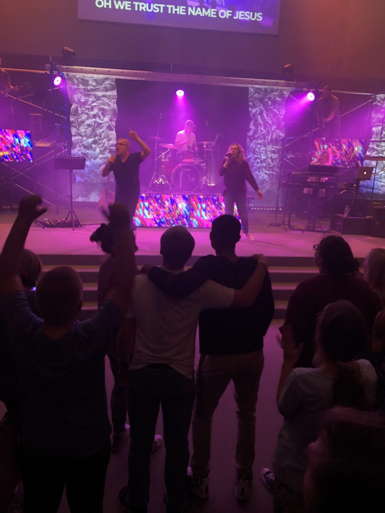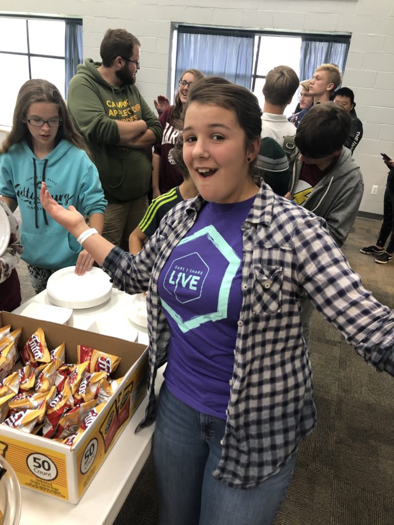 October 12 Aaron, Abigail and Andrew participated in Dare 2 Share, a Colorado-based conference on worship and evangelism that was broadcast out to 125 streaming sites across the nation, even as far as Ireland! They learned about sharing their faith with their friends and even got to go door-to-door for a canned food drive where they also asked for prayer requests and permission to pray for people right then and there. The whole thing was 7.5 hours long, and I was so glad they were able to attend! What a great opportunity for them, with both training and experience. Below are pictures their youth pastor texted me while they were out and about. Abigail won a shirt for yelling the loudest (& having the most excitement). Am I surprised? Nope. She is a Goshert after all, it’s our shared family trait.