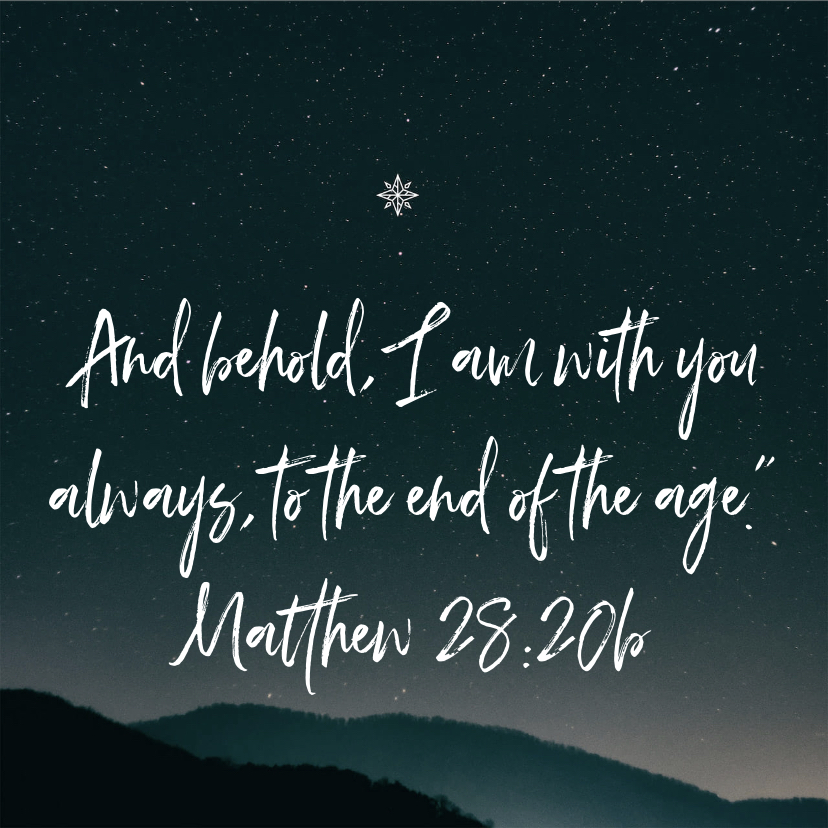 “And behold, I am with you always, to the end of the age.” Matthew 28:20b
