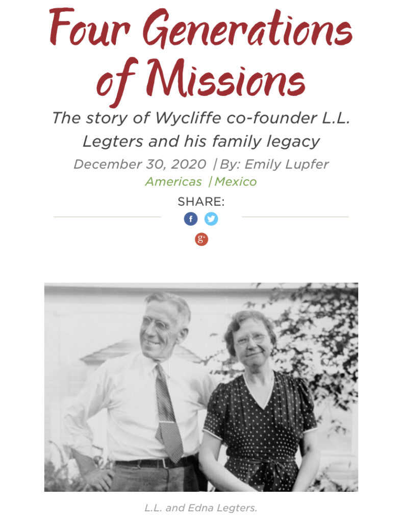 Later I read the following article from Wycliffe about L. L. Legters and his place in Bible translation, and the generations of his family that continue to serve God: