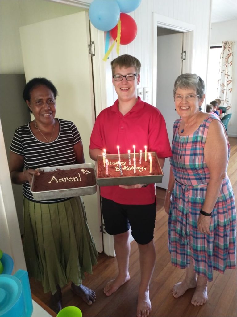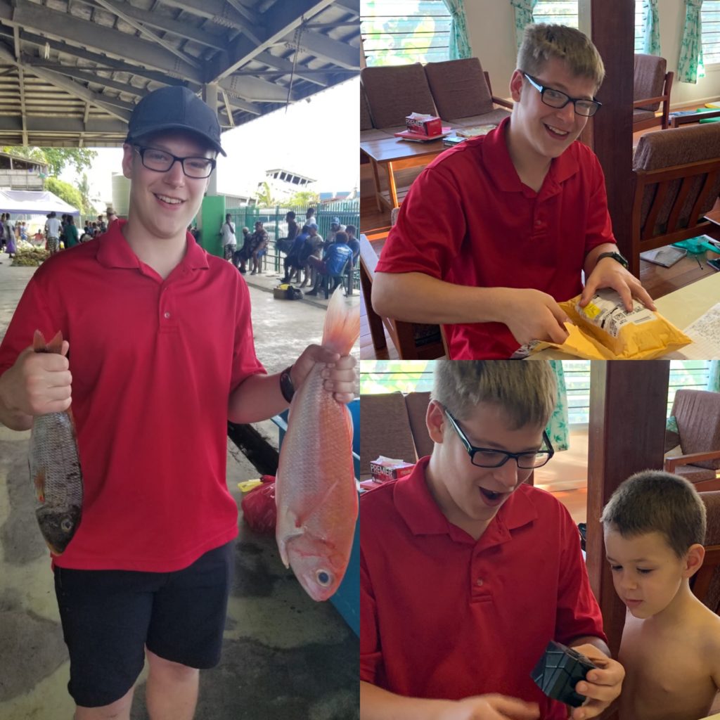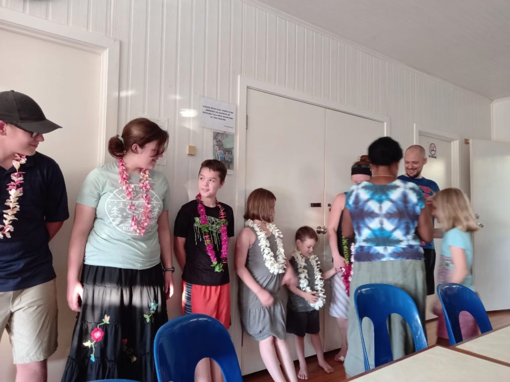 We got out of quarantine only 3 days ago, but between adjusting to the heat (our quarantine hotel was air conditioned), unpacking a few things (we will be on our way to a remote island village in a week and a half, for language learning immersion style), meeting all the staff and SITAG members, orientation classes, and Aaron’s birthday, it feels like it’s been a week since we got out of quarantine. Our days are packed full, and we are so happy to be here and out and about in Honiara. The heat is really zapping our energy. I am collapsing into bed at night, thanking the Great God Almighty for a fan to sleep under. I am constantly on the kids to be drinking water.