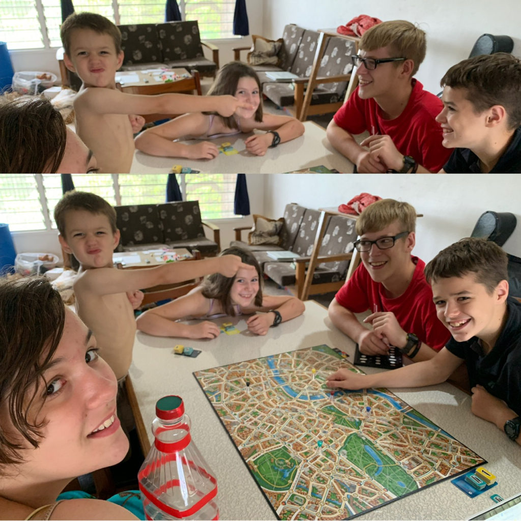 These kids cracked open a new-to-us game together. It’s one of the first times they have all played a serious game together (without Josh and I). It’s fun to watch them interact. With such a large age range between them, sometimes playing games can become a little complicated. I am thankful that they keep investing in each other. We are all learning to have grace for one another and to appreciate each other’s God-given unique gifts and personalities.