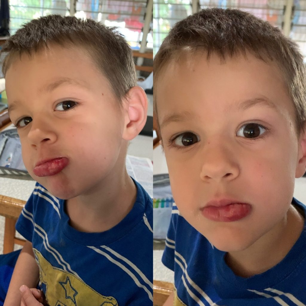 This poor guy had an accident on the trampoline. His lip collided with someone’s head and then cracked quite splendidly. We are thankful he did not need stitches, and “we” learned that it’s a good idea for kids to jump one at a time on the trampoline.