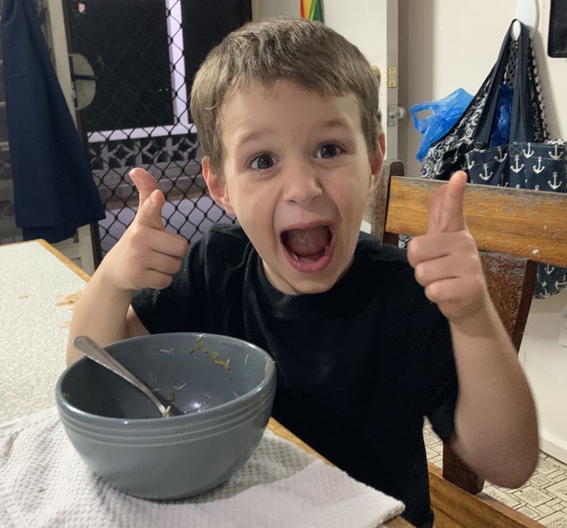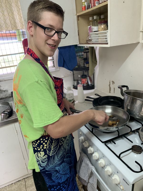 Right before we left the US to come to the Solomons I began thinking about how we could eat healthy and stay on a budget in quarantine. I wasn’t sure how easy cooking would be in a 2 bedroom, 0 kitchen hotel room. Feeding just myself would have been challenging enough, but I would need to feed 7! Since I had been successful with sourdough in NC, the thought of simple, sourdough pancakes came to mind. This seemed doubly appropriate since we thought we might not have access to eggs and I’d found a no-egg recipe that the kids loved. Australian Customs is very strict and Josh did not want to try taking even a small amount of starter through. So I reached out to a friend in the Solomons and asked her if she had a sourdough starter available. She did and she was able to have some waiting for me in quarantine!
