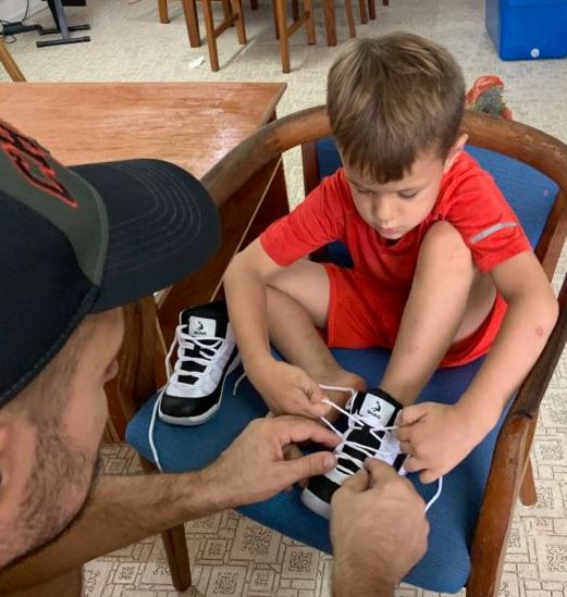 Before we left LA, we packed a crate of things to send to the Solomons. These things varied greatly, from a few special stuffed animals that couldn’t be parted with, to bottles and bottles of activated charcoal and fish oil capsules. Amidst these items were tennis shoes in the next size up for each kid.
