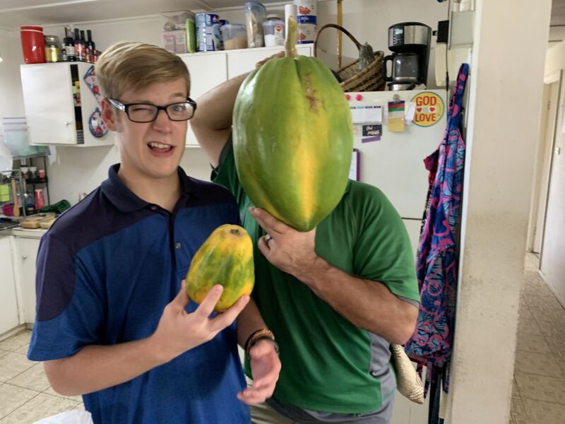 Amidst all the work is plenty of “play”. Dad is in and out of the house through out the day, visitors come and go. There is plenty to entertain (or distract from school😏). Finding giant papayas in the market is a perk of living in the Solomons 🇸🇧.