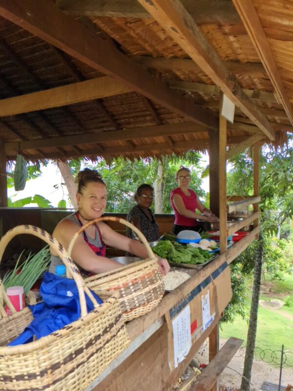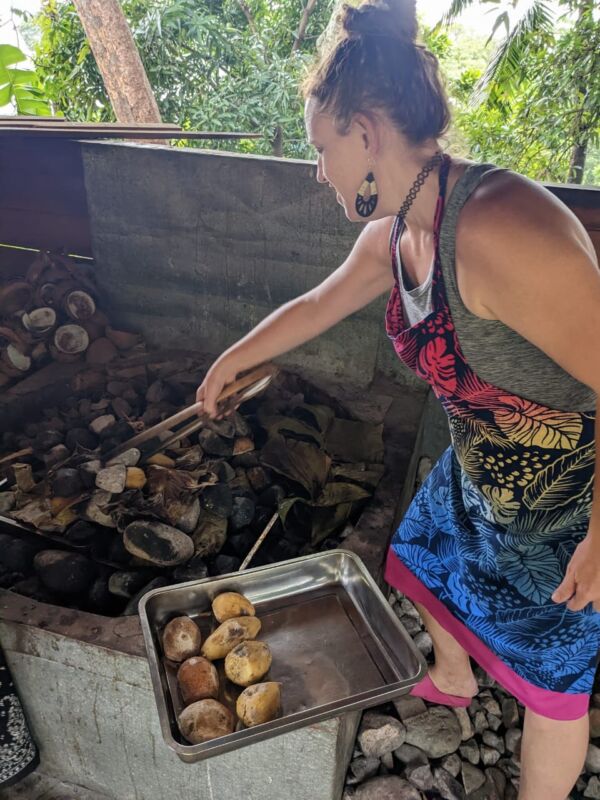 It took us 4 hours to prepare all the food and to arrange the motu (get the fire going and the stones hearing up). Then the food cooked for 2.5 hours. I think our fire was really hot, because some of our food was over cooked, but at least the fish was perfect! I’m going to get the hang of this!