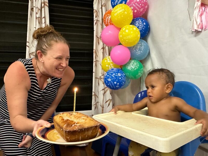 We had a big party for Asiel’s first birthday (Solomon style)! We had over 60 people (kids included) attend and we did a traditional motu (earth oven feast)