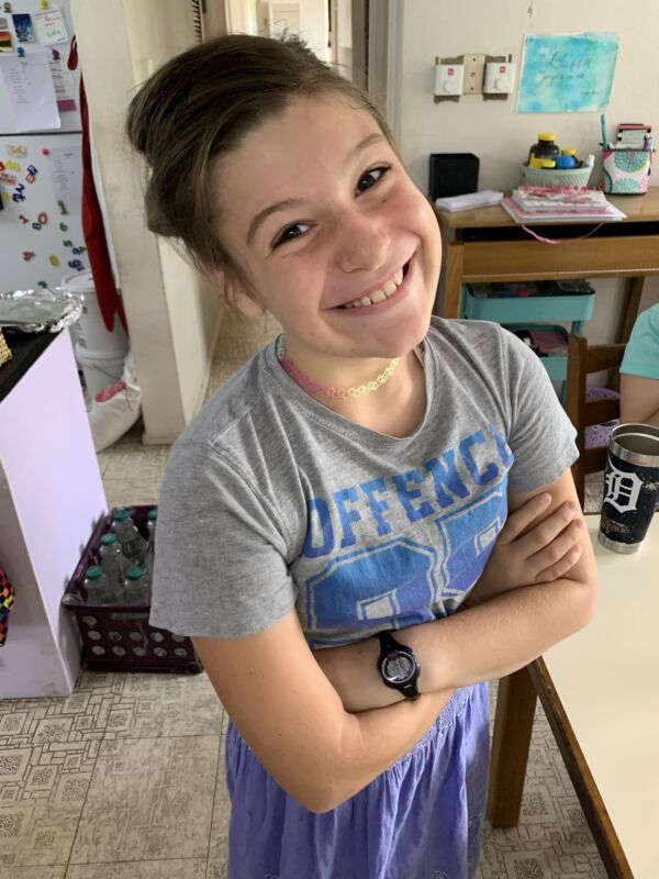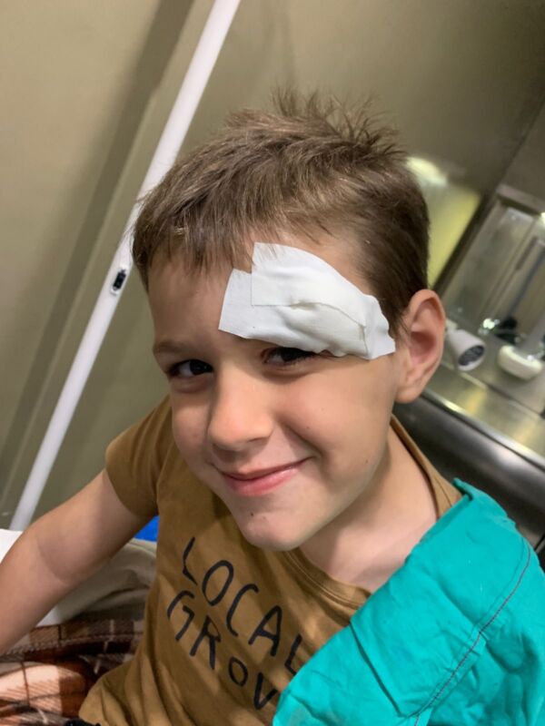 Anna was playing outside, swinging on a rope, and she slipped and busted her knee open. It was a huge gash. She had to get stitches as well.