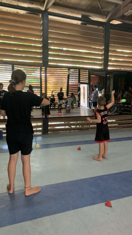 Andrew, Anna, and Asher were able to learn several skills associated with the circus. 🎪 A woman from New Zealand was in the Solomons working with youth to teach them hula hoop, stilts, poi, juggling, acrobatics and other fun skills associated with the circus. The kids really enjoyed the month they were able to go and learn.