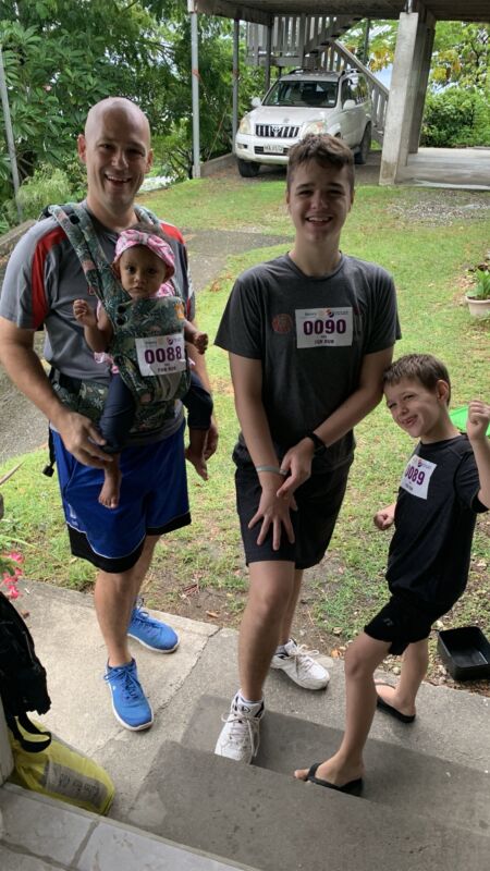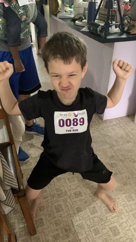 Due to some sickness and injuries (Anna and I) Josh took the boys and Asiel on the Fun Run this past April. Asiel even won a prize for the best dressed.