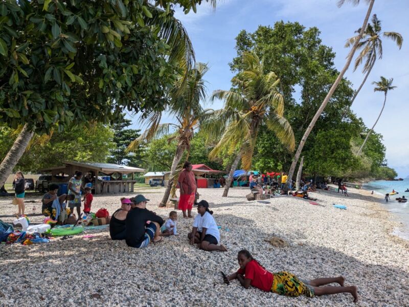 I had lots of help getting the pudding into the motu, and lots of help eating it!