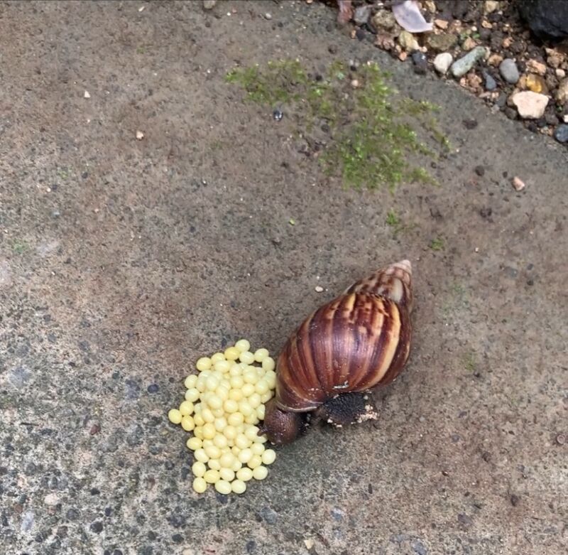 Side note: Anna asked if she could keep 2 eggs and watch them hatch, before the rain came and washed all the eggs away. (African snails can lay up to 500 eggs at once.) I said yes, and we have two in a small jar with dirt. Stay tunedā¦we shall see if they hatch.