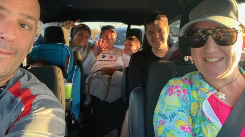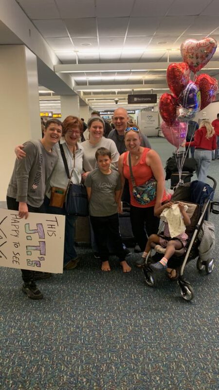 Asiel didn’t want to look for the picture, unfortunately. We each had our own sign; we were trying to make it look like Yaya was some sort of celebrity, and it worked! Lots of people stopped to read the signs, and one woman remarked, “I wish I was Yaya!” So fun! It had been five years since my mom saw three of these kids, and she had never met Asiel. The tears streamed down as she kissed everyone.